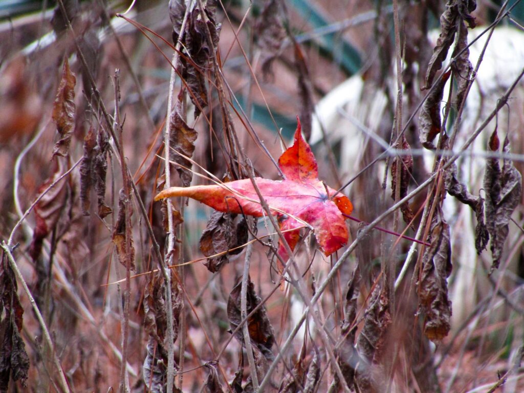 I kept watching for any remnants of spider’s webs, thinking that I might be fortunate enough to catch the shimmer on a strand or two, from a stray glimmer of sunlight as the fog lifted, but this was as close as I could find.