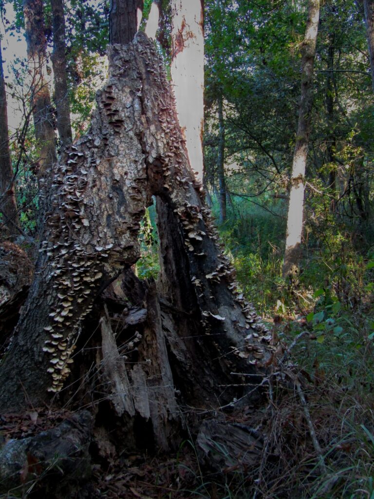 Continuing on the trail, and passing through some areas where a previous undergrowth burn-out was conducted, the landscape shifted. Gone were the open understory as we entered more tightly closed-in growth, with the streaming sunlight struggling more to find its pathway to the leaf-strewn forest floor.