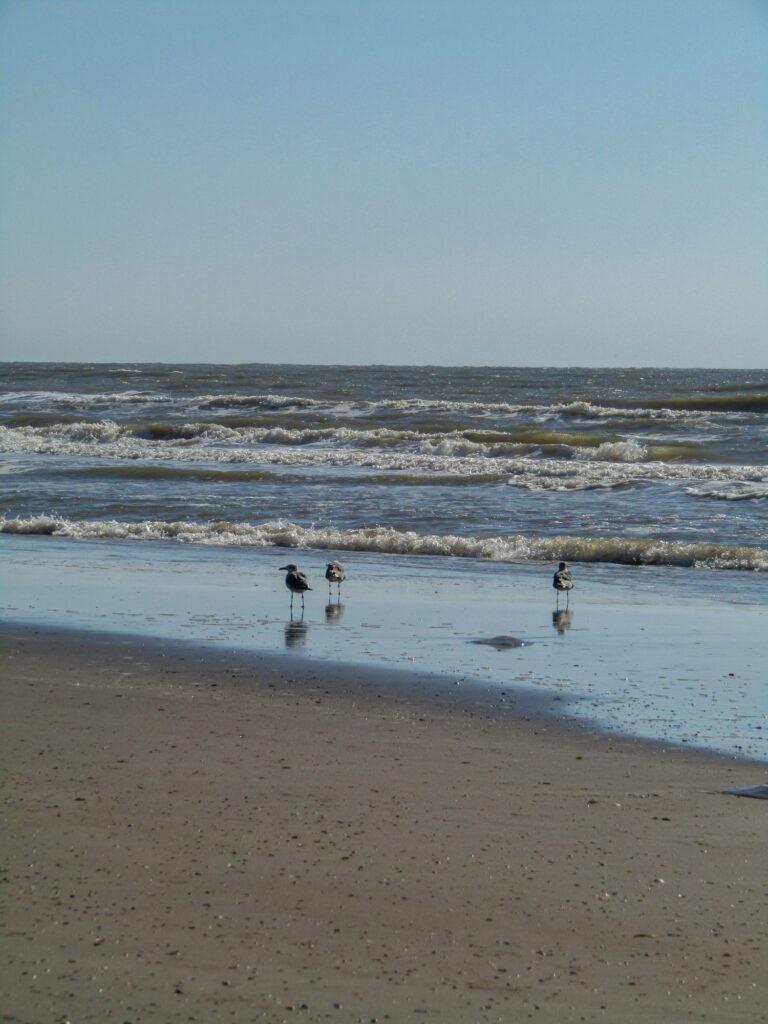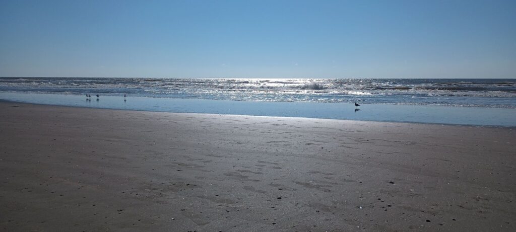 We found a spot to set up chairs and an umbrella, relaxed for a bit, then stowed the gear and walked barefoot in the surf for a while.